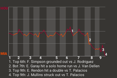 Miami took a 1-0 lead on Enrique Garay's 2nd home run of the season. The solo home run, which Garay hit in the bottom of the seventh, left Houston pitcher Jake Van Dellen visibly frustrated.