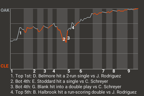 Oakland left-hander Chris Schreyer pitched his team to victory over the Cleveland Browns at Cleveland Browns Stadium. The final score was 5-1. For the Browns, the loss makes their record 5-9.