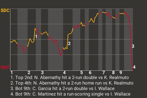 (6, 9th Inning off I. Wallace, 3 on, 1 out)