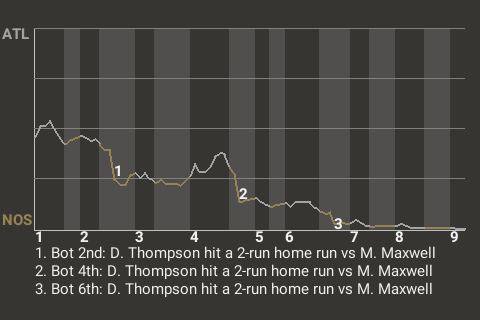With New Orleans leading 2-1 in the bottom of the fourth, Thompson hit a slider from Matt Maxwell for a 2-run home run. It was his 6th home run of the season and put the Saints ahead, 4-1.