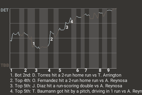 The Detroit Lions picked up a win at Raymond James Stadium, dropping the Tampa Bay Buccaneers, 5-2. Todd Arrington was the difference-maker. Arrington yielded 2 runs over 6.2 innings to notch the win. He scattered 4 hits, walked 4, and struck out 8. His record improves to 2-1. Tampa Bay now is 4-9.