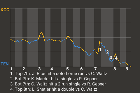 With the game tied, 1-1, in the bottom of the seventh, Waltz had a key at-bat for Tennessee. With runners on 2nd and 3rd, Waltz hit a 2-run single off Ryan Gepner, making the score 3-1, Titans.