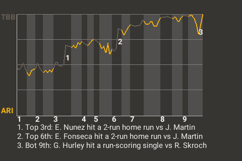Tampa Bay used the hitting of Edwin Fonseca to pick up the win. The second baseman clubbed a 2-run home run in the top of the sixth inning to put the Buccaneers on top, 4-1. For the game, Fonseca had 1 home run and 1 single in 4 at-bats.