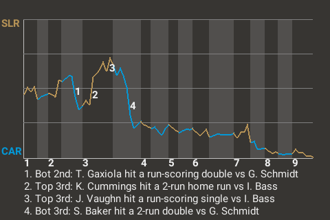 2 (6, 3rd Inning off G. Schmidt, 0 on, 0 outs; 4th Inning off C. Vossberg, 0 on, 1 out)
