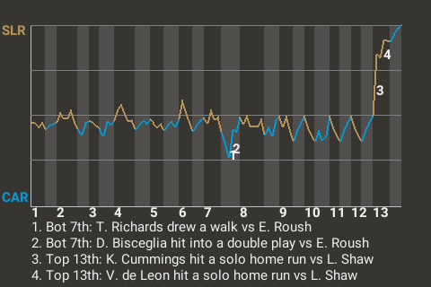 (5, 13th Inning off L. Shaw, 0 on, 0 outs)
