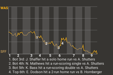 2 (9, 4th Inning off A. Shutters, 0 on, 0 outs; 5th Inning off A. Shutters, 1 on, 2 outs)