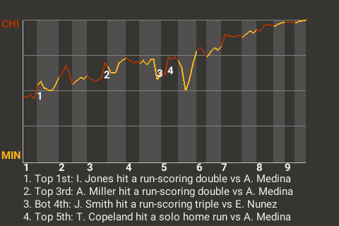 2 (9, 3rd Inning off A. Medina, 1 on, 2 outs; 5th Inning off A. Medina, 0 on, 2 outs)