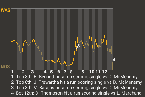 The Saints got a clutch hit from shortstop David Thompson. In the bottom of the 12th, he delivered a run-scoring single to win the game for the Saints.