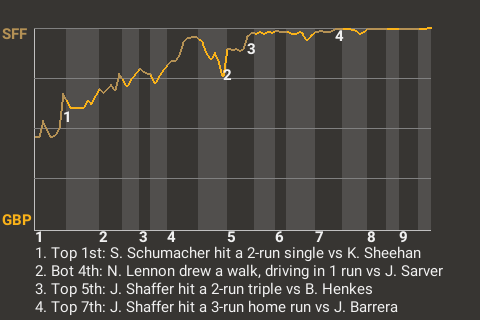 2 (8, 1st Inning off K. Sheehan, 0 on, 0 outs; 4th Inning off K. Sheehan, 2 on, 0 outs)