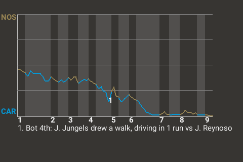 Jon Jungels had a key at-bat with one out in the bottom of the fourth for Carolina. With the bases loaded and the Panthers leading 1-0, he drew a walk, driving in 1 run.