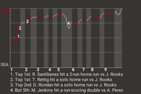 New York used the hitting of Ricardo Santibanez to pick up the win. The right fielder clubbed a 2-run home run in the top of the first inning to put the Giants on top, 2-0. For the game, Santibanez had 1 home run and 1 single in 4 at-bats.