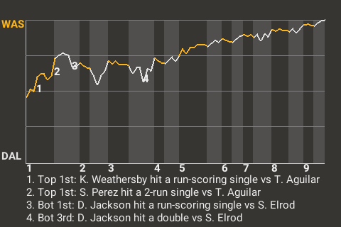Steve Perez had a direct impact on the outcome. Perez contributed a 2-run single in the top of the first inning to put Washington up, 3-0.
