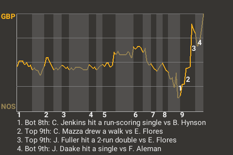 (2, 9th Inning off E. Flores, 3 on, 1 out)