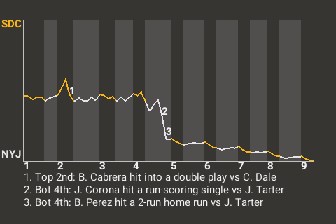 Corey Dale was on the winning side of a pitcher's duel at Giants Stadium. In fact, the New York Jets right-hander was instrumental in his team's 3-0 victory over the San Diego Chargers. The save was credited to Justin DeCola, his 1st. The loss puts San Diego at 9-10.