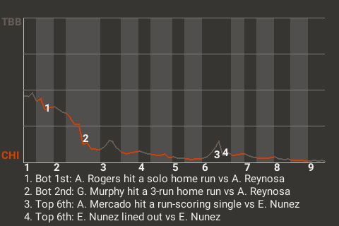 With Chicago leading 1-0 in the bottom of the second, Murphy hit a changeup from Antonio Reynosa for a 3-run home run. It was his 3rd home run of the season and put the Bears ahead, 4-0.