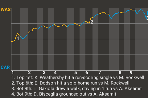 The Washington Commanders received a superlative performance from starting pitcher Lew Erickson, allowing them to bump off the Carolina Panthers, 3-1. Washington goes to 25-16, Carolina to 22-19.