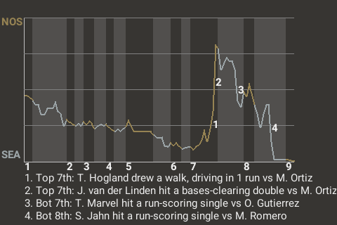 Had Sean Jahn not delivered a key base hit in the bottom of the eighth, the outcome might have been different. Instead, with two down and runners on 1st and 3rd, Jahn hit a run-scoring single. That made the score 6-5, in favor of the Seahawks.