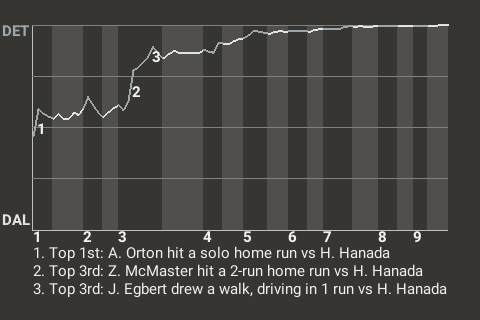 Pena ran roughshod over the Dallas lineup. The right-hander allowed just 3 hits over 8.2 innings, while striking out 8. With the victory, he goes to 4-3 on the season.