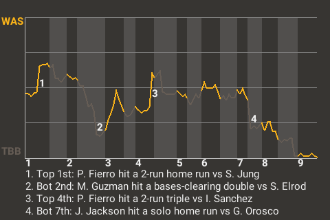 Manny Guzman came through for Tampa Bay with a bases-clearing double in the bottom of the second. The third baseman went 2 for 5 for the game, including 1 home run and 1 double. He scored 1 run and collected 4 RBI.