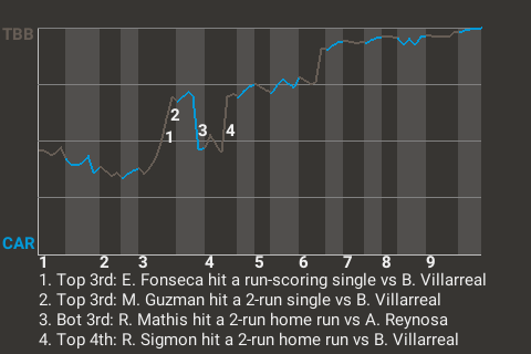 Ryan Sigmon had a 4-RBI game, during Tampa Bay's 8-4 triumph over the Carolina Panthers. Sigmon contributed 1 single and 2 home runs to the cause. The Buccaneers go to 23-28, putting them third in the National Conference South.