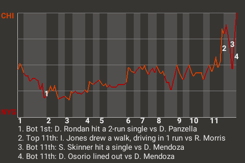 Isaiah Jones, who is tied for 10th in the NBC with a .417 on-base percentage, had a direct impact on the outcome. Jones contributed a run-scoring walk in the top of the 11th inning to put Chicago up, 4-3.