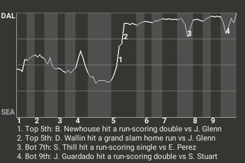 Dallas grabbed the momentum in the top of the fifth, when Wallin hit a grand slam home run off Jordan Glenn. His 17th home run of the season put the Cowboys out in front, 6-2.