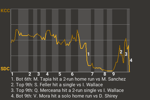 2 (7, 1st Inning off M. Sanchez, 0 on, 0 outs; 8th Inning off R. Fabian, 0 on, 1 out)