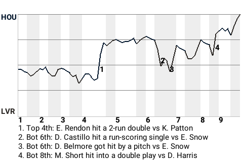Who knows how it might've ended, had it not been for Edwin Rendon? The Houston second baseman had a 2-run double in the top of the fourth inning to put the Texans on top, 2-1. For the game, Rendon had 1 double and 2 singles in 4 at-bats.