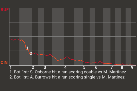 The Bengals got a big at-bat from left fielder Sam Osborne. For the game, Osborne was 1 for 4 with a double. In the bottom of the first, with runners on 1st and 2nd, he stroked a run-scoring double. His 4th double of the season gave Cincinnati a 1-0 lead.