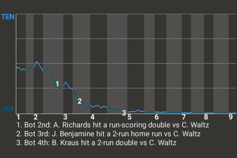 2 (3, 3rd Inning off C. Waltz, 0 on, 1 out; 4th Inning off C. Waltz, 3 on, 2 outs)