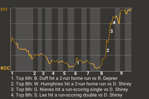2 (14, 1st Inning off R. Gepner, 0 on, 0 outs; 8th Inning off D. Shirey, 1 on, 2 outs)
