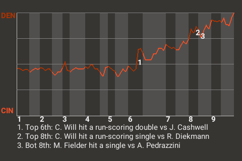 Who knows how it might've ended, had it not been for Cody Will? The Denver catcher had a run-scoring double in the top of the sixth inning to put the Broncos on top, 1-0. For the game, Will had 1 double and 1 single in 3 at-bats.