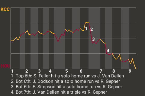 The Houston Texans eked out a 3-2 win versus the Kansas City Chiefs at Reliant Stadium. Nobody did more than pitcher Jake Van Dellen. He was terrific. This win makes it 6 in a row for Houston.