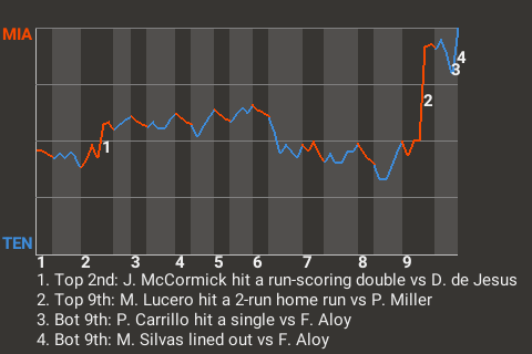 Marcos Lucero came through with a big-time hit for Miami. The third baseman smacked a 2-run home run in the top of the ninth inning to give his team the lead, 4-2. It was his only hit, but it was clutch.