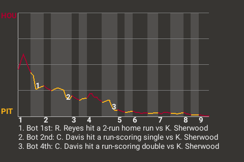 Pittsburgh center fielder Chad Davis contributed significantly to his team's 5-1 win over the Houston Texans. Davis went 4 for 4 with 2 runs scored to lead the offensive attack for the Steelers. Pittsburgh, with the win, sits at 12-29.