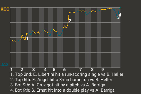 Clarke threw well for Kansas City, thwarting the Jacksonville offense. The right-hander tossed 103 pitches over 8 innings. He allowed just 1 run on 3 hits.