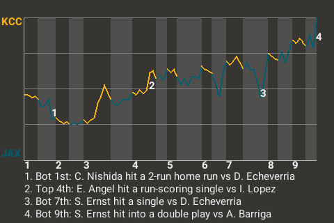 The game turned with two out in the top of the fourth. That's when Angel hit a run-scoring single off Ivan Lopez. It propelled the Chiefs into the lead, 3-2.