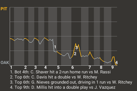 Ritchey gave Oakland a first-rate performance. The 6-foot-2 left-hander permitted 1 run on 3 hits over 8 innings of work.