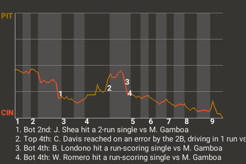 Cincinnati parlayed a decent outing from starter Joe Shea into a solid win over the Pittsburgh Steelers. The final score was 5-3. Cincinnati, now 25-26, holds down second place in the American Conference North.