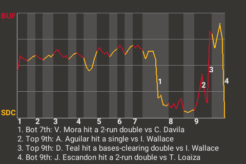 (9, 7th Inning off C. Davila, 2 on, 1 out)