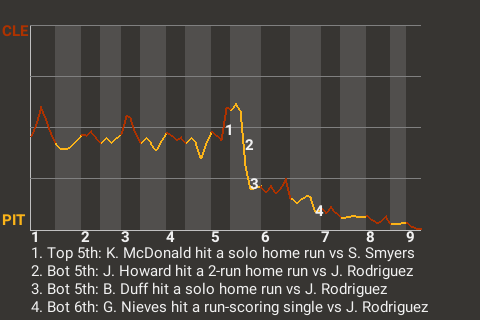 The Steelers got a big at-bat from first baseman Joe Howard. For the game, Howard went 1-4 with a home run, while adding 2 RBI and scoring once. In the bottom of the fifth, with a runner on 1st, he stroked a 2-run home run. His 4th home run of the season gave Pittsburgh a 2-1 lead.