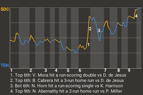 2 (11, 2nd Inning off D. de Jesus, 0 on, 0 outs; 6th Inning off D. de Jesus, 2 on, 2 outs)