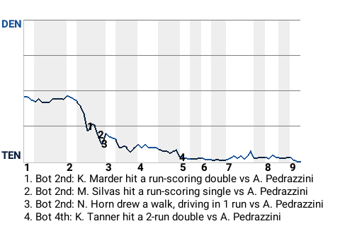 2 (2, 2nd Inning off A. Pedrazzini, 2 on, 0 outs; 3rd Inning off A. Pedrazzini, 1 on, 1 out)