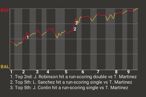 Buffalo beat Baltimore on the strength of starting pitcher Chris Davila's fine effort. The right-hander led his team to a win, 3-0. With the loss, Baltimore drops to 3-5.
