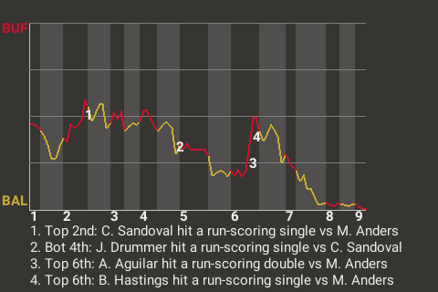 a - B. Hastings pinch hit for C. Sandoval in the 6th