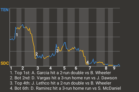 (1, 6th Inning off S. McDaniel, 2 on, 2 outs)