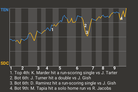 (5, 9th Inning off R. Jacobs, 0 on, 2 outs)