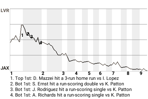 (1, 1st Inning off K. Patton, 1 on, 0 outs)