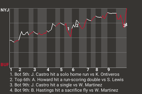 New York beat Buffalo on the strength of starting pitcher Kelvin Ontiveros's fine effort. The right-hander led his team to a win, 3-2. The winning pitcher was Ontiveros, now 1-2. He tossed 8 innings of 5-hit ball, while walking 0 and fanning 5. Buffalo, with the loss, is 5-6.