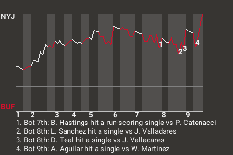 The New York Jets scored a tight, 3-2 win versus the Buffalo Bills at Ralph Wilson Stadium. New York pitcher Pamphile Catenacci held his own in the contest. Now 5-7, the Bills have not played well this season.